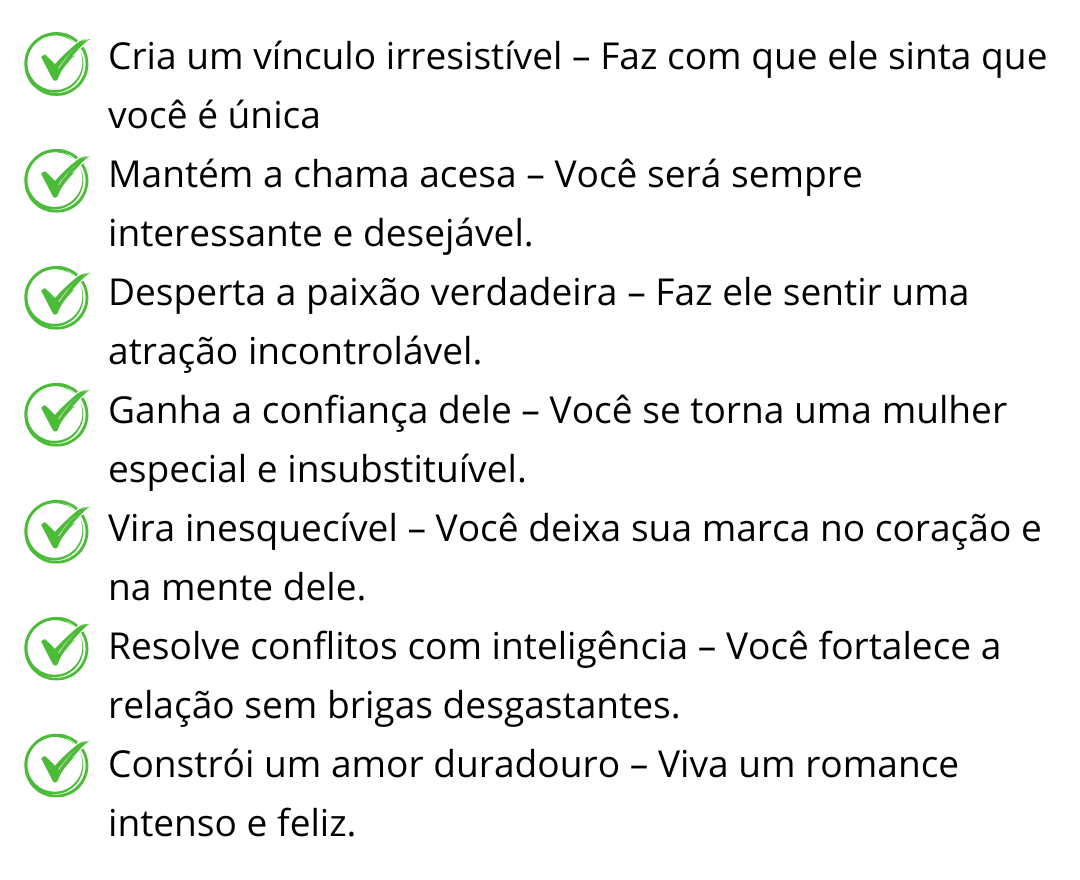 É só clicar no botão “QUERO O PROGRAMA!” para mudar tudo o que você conhece sobre conquistar um homem!
