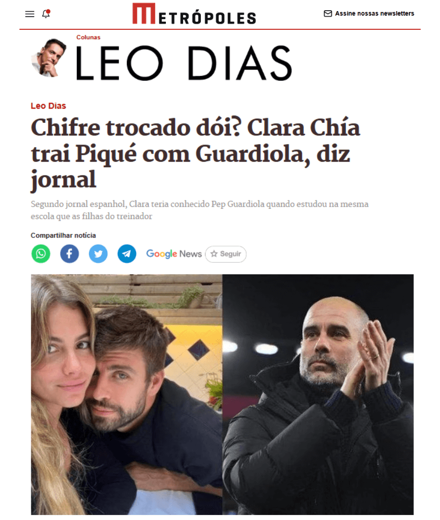 Mas o pior ainda está por vir… recentemente, Clara Chia traiu Piqué aplicando o gatilho magnético em outro homem casado e extremamente poderoso: Pep Guardiola, técnico do Manchester City.