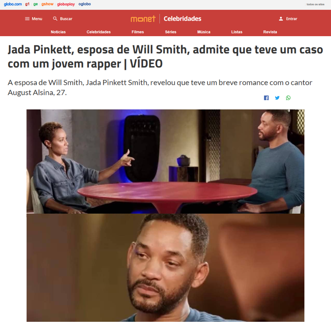 Há 26 anos, Jada usa esse mesmo gatilho em Will Smith…