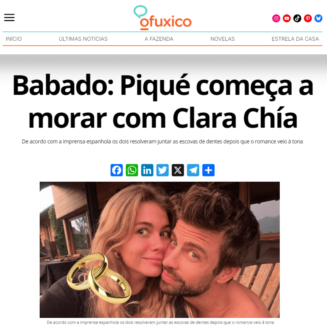 E isso aconteceu porque Clara ativou um gatilho magnético tão poderoso em Piqué, que do dia pra noite ele abandonou um casamento de 11 anos e dois filhos, sem nem pensar duas vezes!